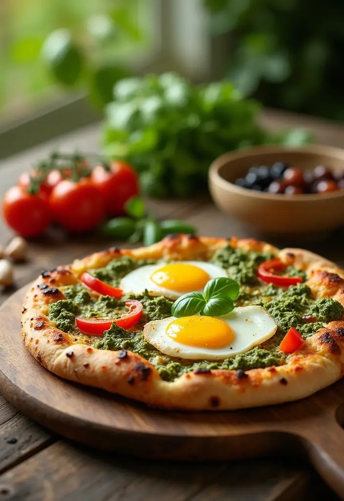 Start your day right with a mouthwatering Savory Pesto and Egg Pizza! This breakfast delight combines fresh pesto, farm-fresh eggs, and gooey cheese for a flavor explosion. The wood-fired oven adds a smoky char to the crust, making each bite even more delicious. It’s hearty, satisfying, and perfect for brunch enthusiasts or anyone looking to elevate their morning routine.